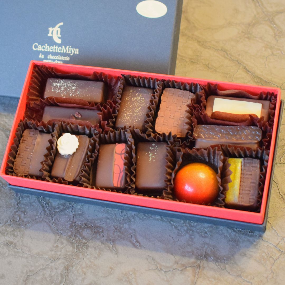 名古屋市の覚王山通にあるショコラトリー『CachetteMiya (カシェットミヤ)』。一粒一粒が美しいボンボンショコラをはじめ、口どけなめらかで濃厚な『生ショコラテリーヌ」や焼き菓子、ショコラドリンクなど、訪れるたびに新しいお気に入りに出会えるチョコレート専門店です。職人が一つ一つ丁寧に作りあげる本格ショコラを是非ご賞味下さい。