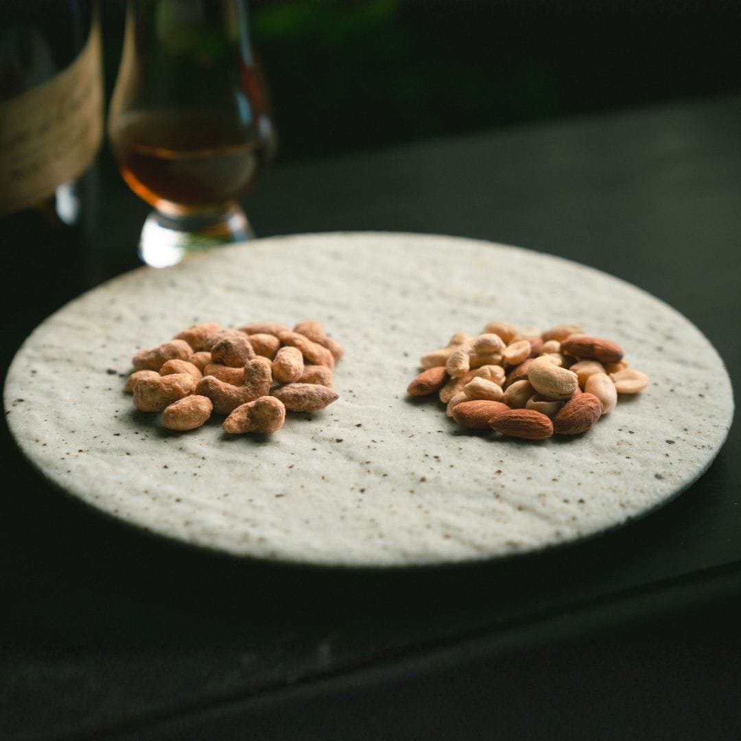 【燻製ナッツ<オリジナルブレンド>】袋を開けた瞬間に広がるスモーキーな香り。ナッツ本来のコクと香ばしさ、燻製の深い余韻をバランスよく感じられます。フレーバーを使わず、本来の風味を活かした「本物の燻製ナッツ」です。 【燻製キャラメルナッツ】 燻製岩塩と燻製黒胡椒をアクセントに、メープルシュガーとブラウンシュガーでやさしい甘さに仕上げました。コーヒーや紅茶はもちろん、お酒との相性も抜群です。