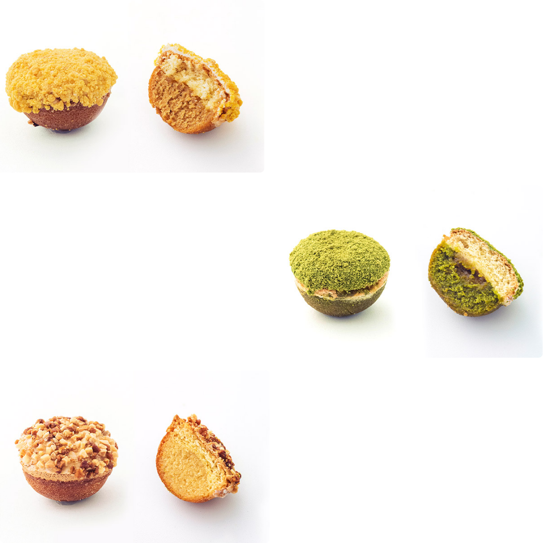 Maruはキビ糖や黒糖を使用した優しい甘さのバター生地と、ふわふわに焼き上げたダックワーズの二層の生地を組み合わせたプチバターケーキ。表面のナッツやクラムの食感や香り、中に入っているコンフィチュールがアクセントとなっています。 【黒糖パッション】黒糖のコクのある甘さとパッションフルーツの鮮烈な華やかさを感じていただけます。中にはパッションフルーツのコンフィチュールが、より一層華やかに香ります。 【抹茶レモン】甘酸っぱさと抹茶の深みを感じていただけます。しっとりとした抹茶風味の生地の中にレモンのコンフィチュールが爽やかに香ります。 【アーモンド】ショコラ生地のサブレに、コスタリカ産のカカオ豆から作る奥深くビターな味わいのチョコレートクリームをサンド。アクセントにカリッとした食感のローストカカオの粒を直接入れる事で、カカオ本来の美味しさが引き立つちょっぴり大人な味わいです。
