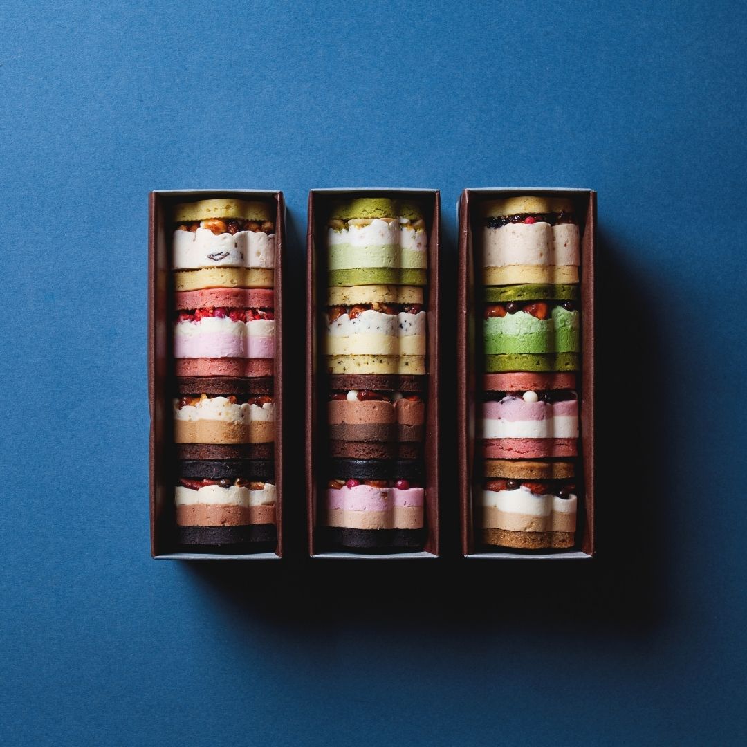名古屋発の進化系バターサンドブランド『積奏(せきそう)』。海、森、街――記憶の中にある風景や旅先の情景を、素材の重なりで描くように生まれました。北海道産バターを主軸に、果実やナッツ、カカオなどを幾層にも重ね、職人が一層ずつ丁寧に仕立てています。たべ手とつくり手の想いが積み重なり、やわらかな音色のように広がる味わい。ひと口ごとに余韻が響き、味わう時間そのものが小さな祝福となる。日常と特別な日を静かに結ぶバターサンドです。