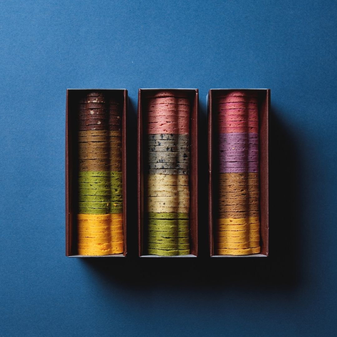名古屋発の進化系バターサンドブランド『積奏(せきそう)』。海、森、街――記憶の中にある風景や旅先の情景を、素材の重なりで描くように生まれました。北海道産バターを主軸に、果実やナッツ、カカオなどを幾層にも重ね、職人が一層ずつ丁寧に仕立てています。たべ手とつくり手の想いが積み重なり、やわらかな音色のように広がる味わい。ひと口ごとに余韻が響き、味わう時間そのものが小さな祝福となる。日常と特別な日を静かに結ぶバターサンドです。